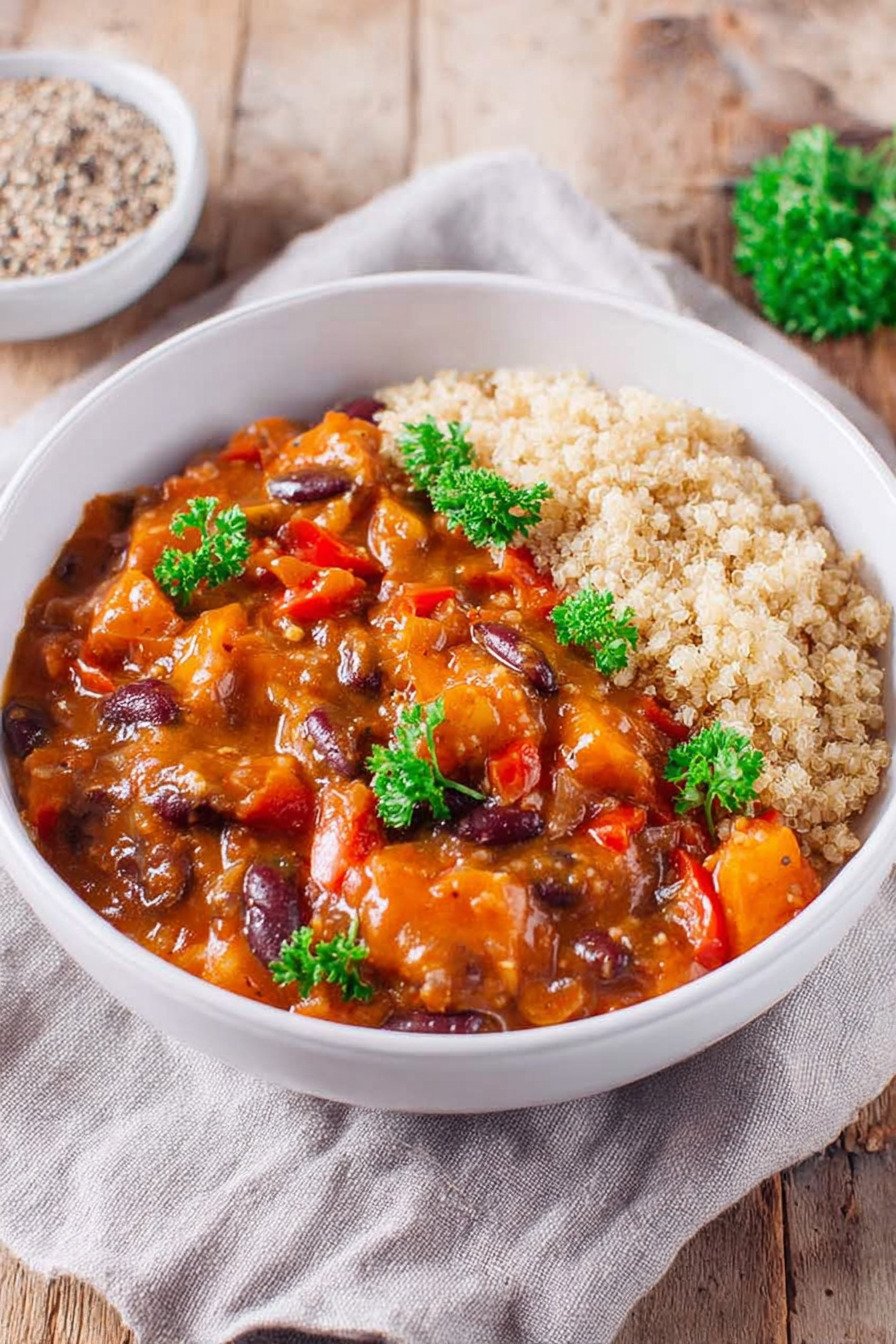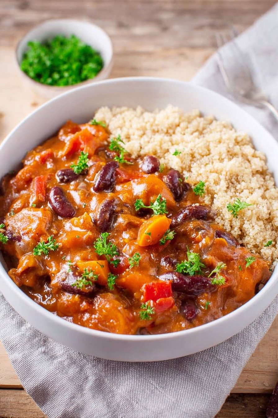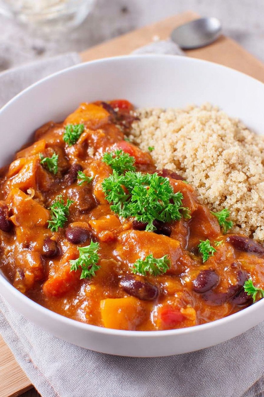 Dieses Gericht vereint Bohnen, Erdnussbutter und Gewürze zu einem sämigen Stew. Es passt perfekt in den Alltag und liefert viel Geschmack mit wenig Aufwand. Wer Onepot Rezepte liebt, findet hier ein echtes Wohlfühlessen.