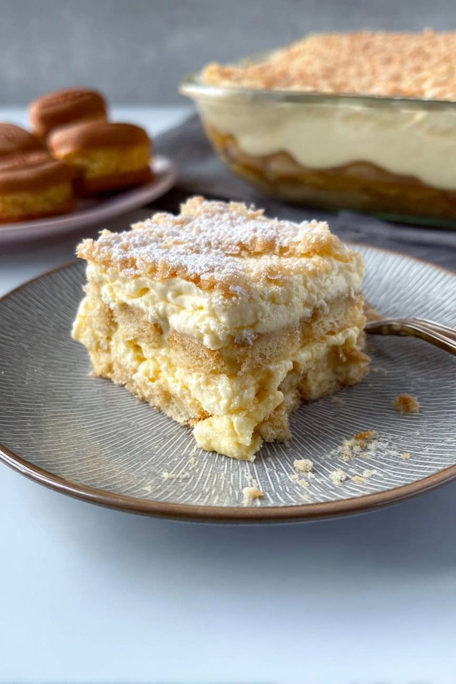 Die Biskuits sollten nur kurz in Milch getaucht werden. Zu viel Flüssigkeit macht die Schichten weich. Zu wenig Flüssigkeit lässt die Struktur trocken wirken. Ein kurzer Kontakt reicht völlig aus.