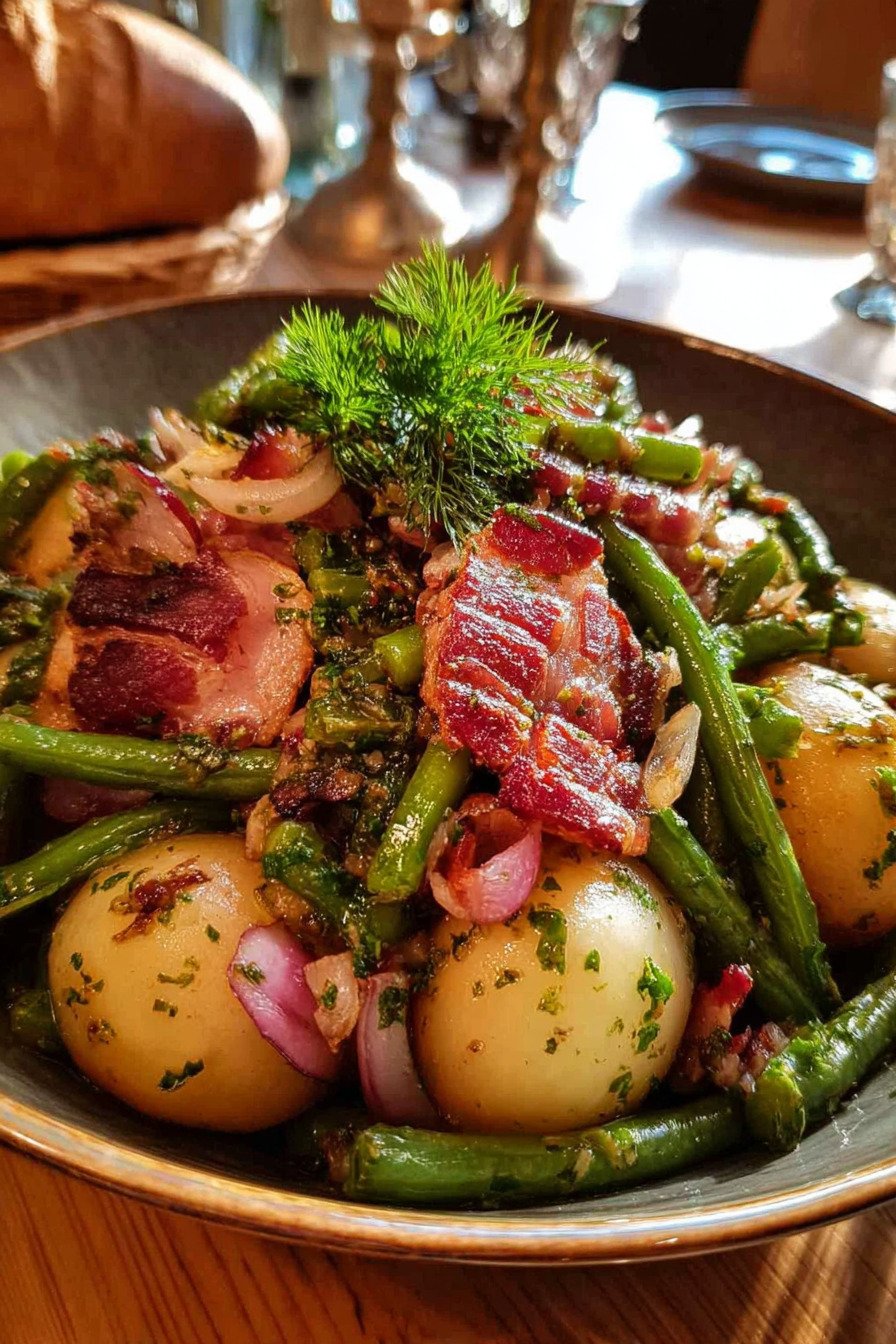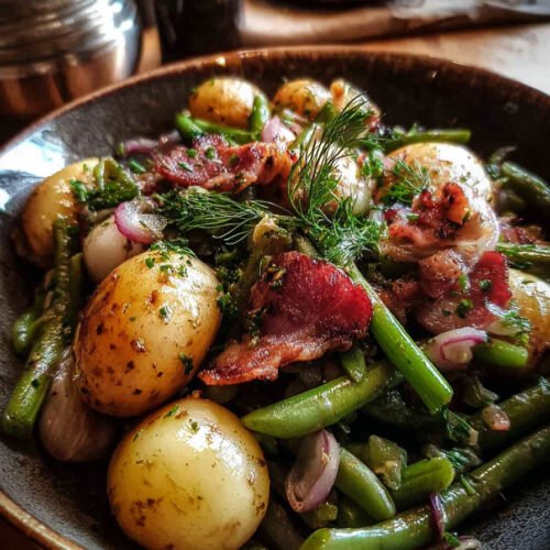 Dieses Gericht zeigt Heimat im Teller. Mit reifen Birnen, zarten Bohnen und würzigem Speck entsteht ein warmer Eintopf, der satt macht und ruhig wirkt. Wer Bohnen Rezepte sucht, findet hier einen klaren Startpunkt, der leicht gelingt. Die Zutaten liegen nah beieinander. Der Ablauf bleibt schlicht. Der Geschmack überzeugt. Ich beginne mit frischen Bohnen. Die Farbe bleibt grün und der Biss bleibt zart. Der Speck gibt Tiefe. Die Birne bringt Süße. Zusammen entsteht ein mildes Gleichgewicht, das Kinder wie Gäste mögen. Für Varianten denke ich an Bohnen Mit Speck aus der Pfanne, an Rote Bohnen Rezepte für eine kräftige Note, an Schwarze Bohnen Rezepte mit Rauch und an ein Grüne Bohnen Rezept für den schnellen Abend. So wächst die Auswahl und der Plan für die Woche wirkt entspannt. Wer Saures liebt, probiert ein Saure Bohnen Rezept als Beilage. Auch ein Weise Bohnen Rezept passt in den Wochenplan und liefert Eiweiß und Ballaststoffe. Lina führt Schritt für Schritt durch das Kochen. Die Arbeit bleibt überschaubar. Das Ergebnis steht rasch auf dem Tisch und füllt den Raum mit einem sanften Duft. Ruhig kochen. Kurz würzen. Heiß servieren. So geht es einfach und gut. Dazu passt Brot. Auch Salzkartoffeln runden ab. Ein Glas Apfelsaft passt gut.