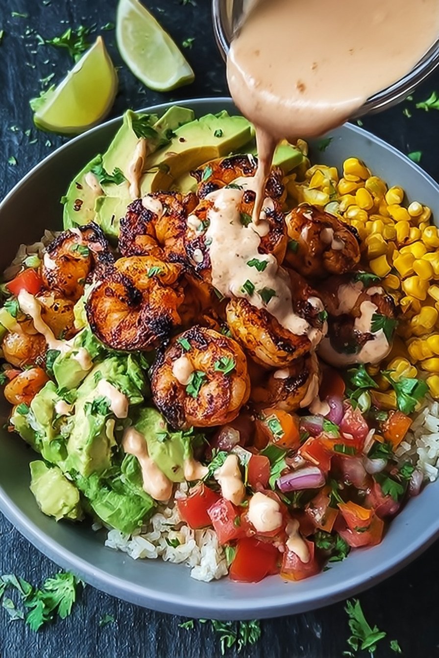 Frische Garnelen garen kurz und bleiben saftig. Avocado bringt cremige Struktur. Mais setzt süße Akzente. Limette sorgt für klare Säure. Reis oder Quinoa geben eine runde Basis. Die Sauce bindet alles zu einem ruhigen Ganzen. So entsteht eine Schale, die satt macht und leicht wirkt.