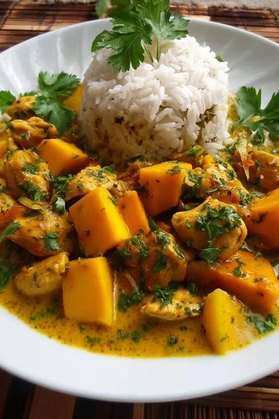 - Zartes Mango Huhn in cremiger Kokosmilch gelingt schnell und zuverlässig.