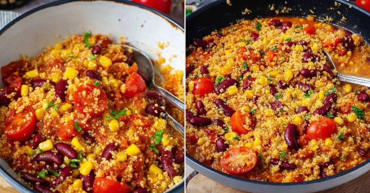 Couscous Pfanne mit Kidneybohnen und Tomaten Abendessen Wenig Kalorien