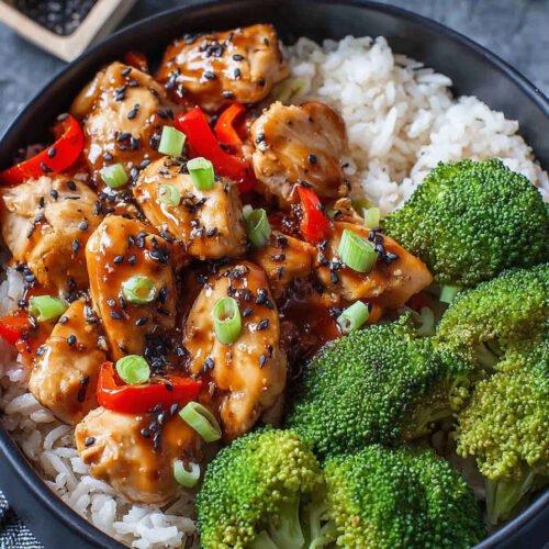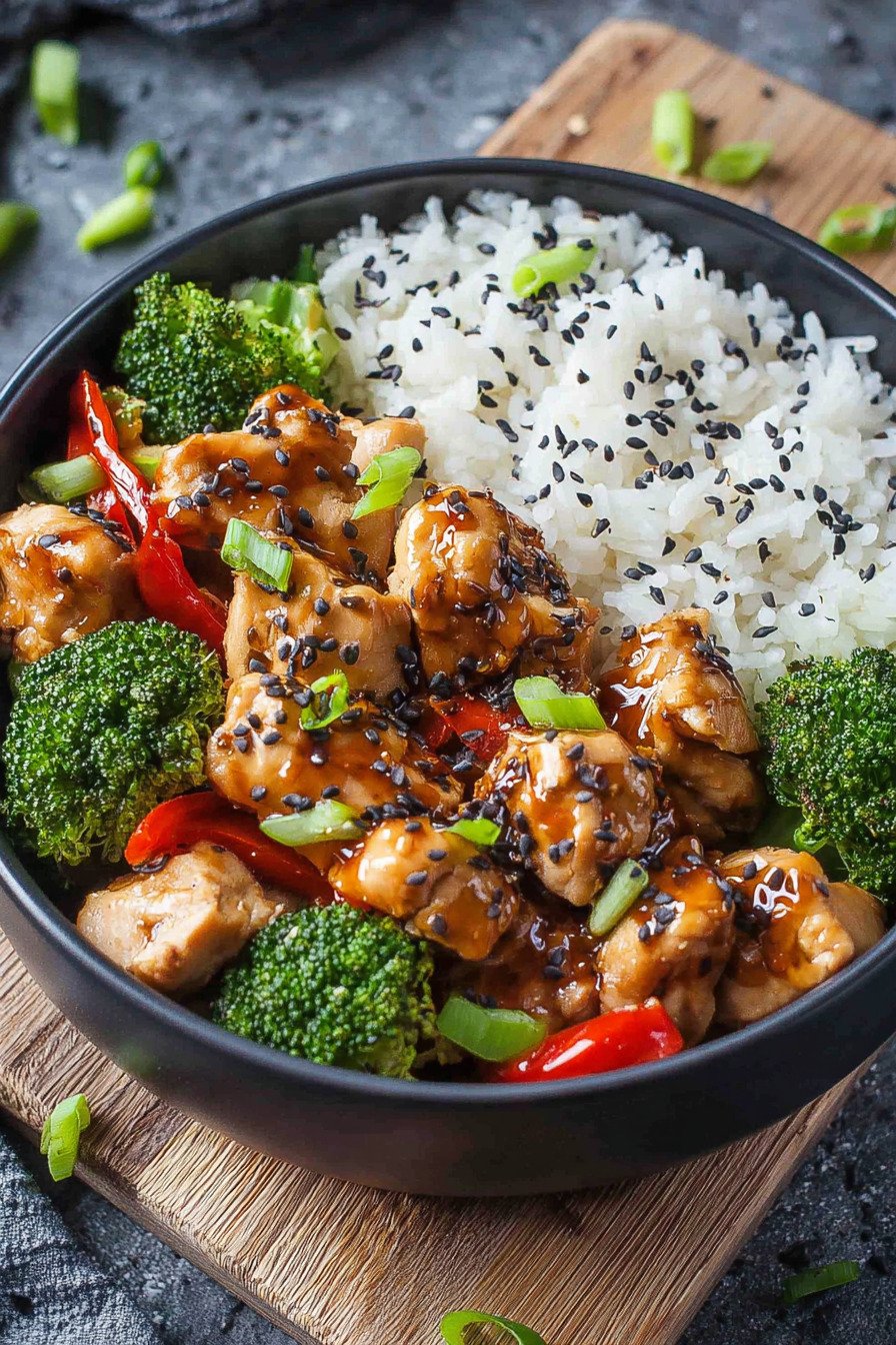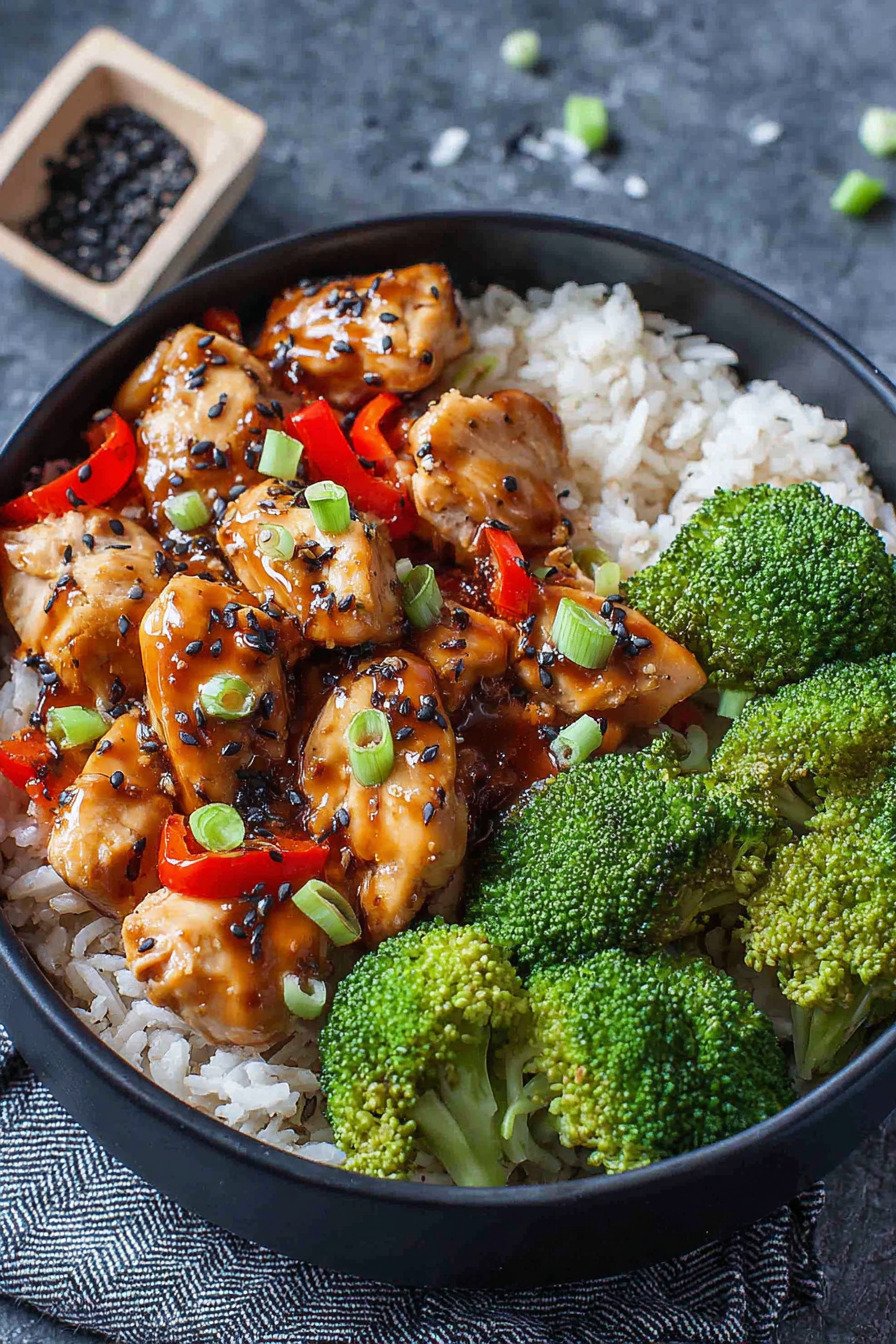 Klare Schritte bringen Ruhe an den Herd. Saftiges Hähnchen zieht in Teriyaki Sauce und gart kurz. Brokkoli bleibt bissfest. Reis sorgt für eine sanfte Basis. So entsteht ein Teller der gut schmeckt und gut tut.
