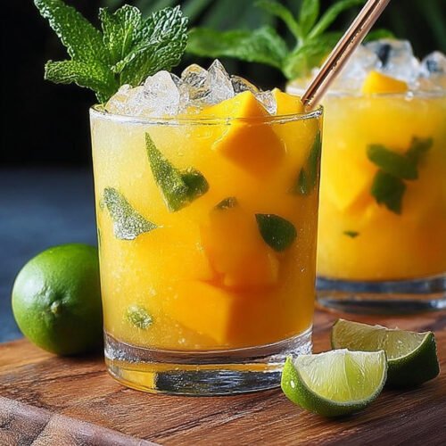 Dieser Mocktail zeigt klare Mango und helle Limette. Die Mischung bleibt leicht und erfrischt. Die Zubereitung gelingt ohne Gerät und ohne Wartezeit.