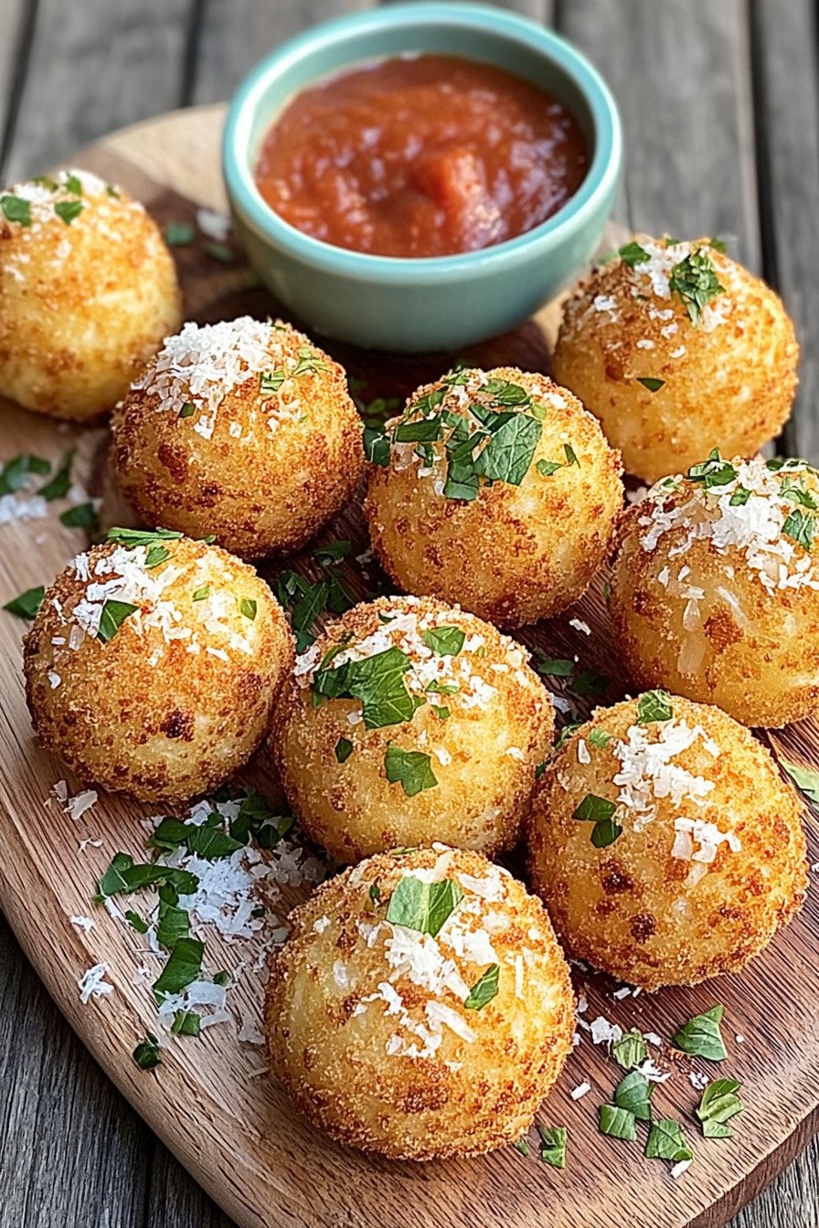 Für Besuch am Abend liefert das Rezept einen Snackidee für Gäste mit sicherem Erfolg. Die Bällchen schmecken pur. Ein Kräuterdip bringt Frische. Tomatensauce bringt Säure und Tiefe.