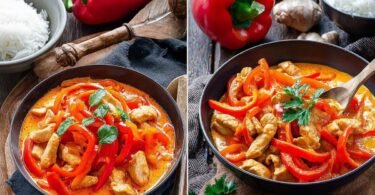 Eine Portion liefert eiweißreiche Kost und kräftige Sättigung. Die Sauce bringt moderate Kohlenhydrate durch Zwiebeln und Paprika. Das Gericht passt in ausgewogene Tagespläne. Wer leichter essen möchte wählt Salat und Reis in kleiner Menge.