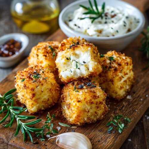 Feta: Der Käse bildet das Herzstück dieses Snacks. Mit seiner cremigen Konsistenz im Inneren und seiner leichten Säure bringt er eine Balance in das Gericht, die den knusprigen Mantel ergänzt.