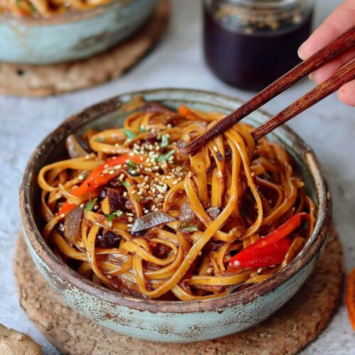 Diese gebratenen Asia Nudeln bringen frische Aromen direkt in deine Küche. Das Rezept vereint Gemüse, Sojasauce und Nudeln zu einer einfachen Mahlzeit, die schnell zubereitet ist. Vegetarische Rezepte wie dieses machen es leicht, gesund und abwechslungsreich zu essen. Die Asia Nudeln sind vielseitig. Du kannst Paprika, Karotten oder Zucchini verwenden und so immer wieder neue Variationen schaffen. Ob als schnelles Mittagessen oder als leichtes Abendessen, dieses Asia Nudeln Rezept passt in jeden Alltag. Die Zubereitung erfolgt in einer Pfanne. Die Nudeln braten kurz mit Gemüse und Sauce an, wodurch sie ihren typischen Geschmack erhalten. Asia Nudeln vegetarisch sind nicht nur schmackhaft, sondern auch eine gute Grundlage für abwechslungsreiche Nudelpfanne Rezepte. Wer chinesische Rezepte oder Asia Rezepte mag, wird hier fündig.