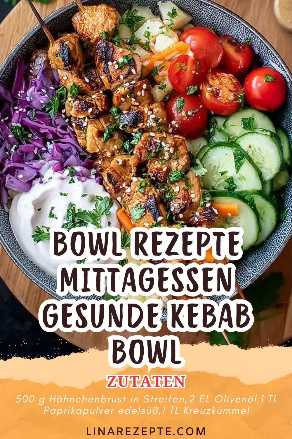 Bowl Rezepte Mittagessen trifft auf frische Küche. Diese Kebab Bowl bringt viel Gemüse, saftiges Hähnchen und eine cremige Joghurtsoße in eine Schale. So entsteht ein Teller, der satt macht und gut tut. Gesunde Bowl Rezepte zeigen, wie einfach Balance gelingt. Die Basis liefert Bulgur. Dazu kommen knackige Gurke, Tomate, Rotkohl und Kräuter. Die Bowl Soße Rezepte Idee verbindet Joghurt mit Zitrone und Knoblauch. So bekommt alles eine helle, milde Würze. Bowl Rezepte und Bowl Ideen geben dir viele Wege. Du kannst Hähnchen nutzen oder Kichererbsen wählen. Für Bowl Rezepte Vegetarisch und Vegane Bowl Rezepte passt die gleiche Basis. Du entscheidest nach Hunger und Tageszeit. Alles liegt nah beieinander und lässt sich mit einem Löffel gut essen.