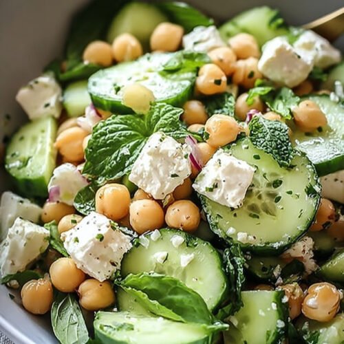- Frischer Gurkensalat mit Feta und Kichererbsen als vielseitige Beilage