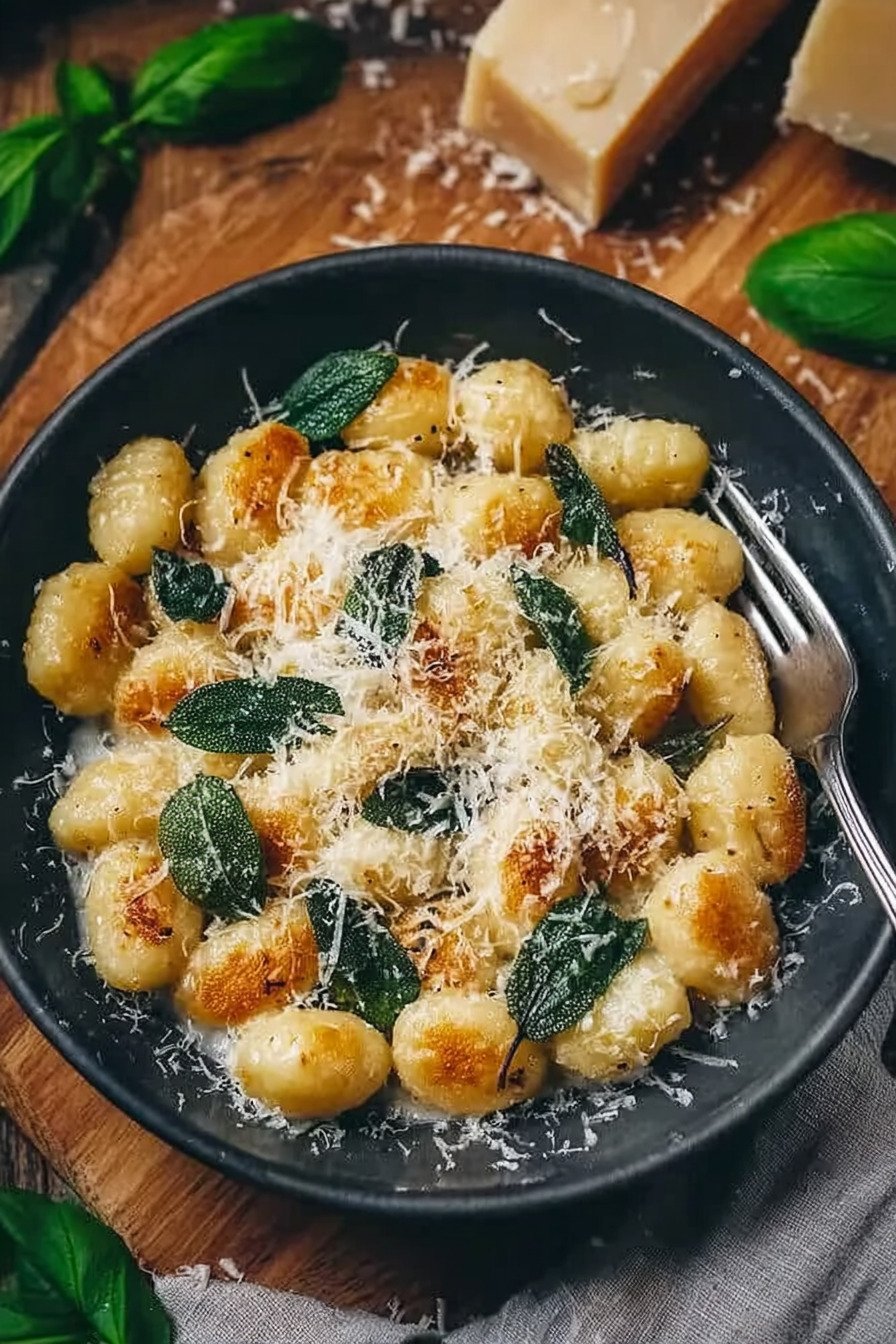 Bräune die Butter leicht. Die Nussnote passt zu Gnocchi. Achte auf Hitze Kontrolle. So bleibt alles sanft und rund.