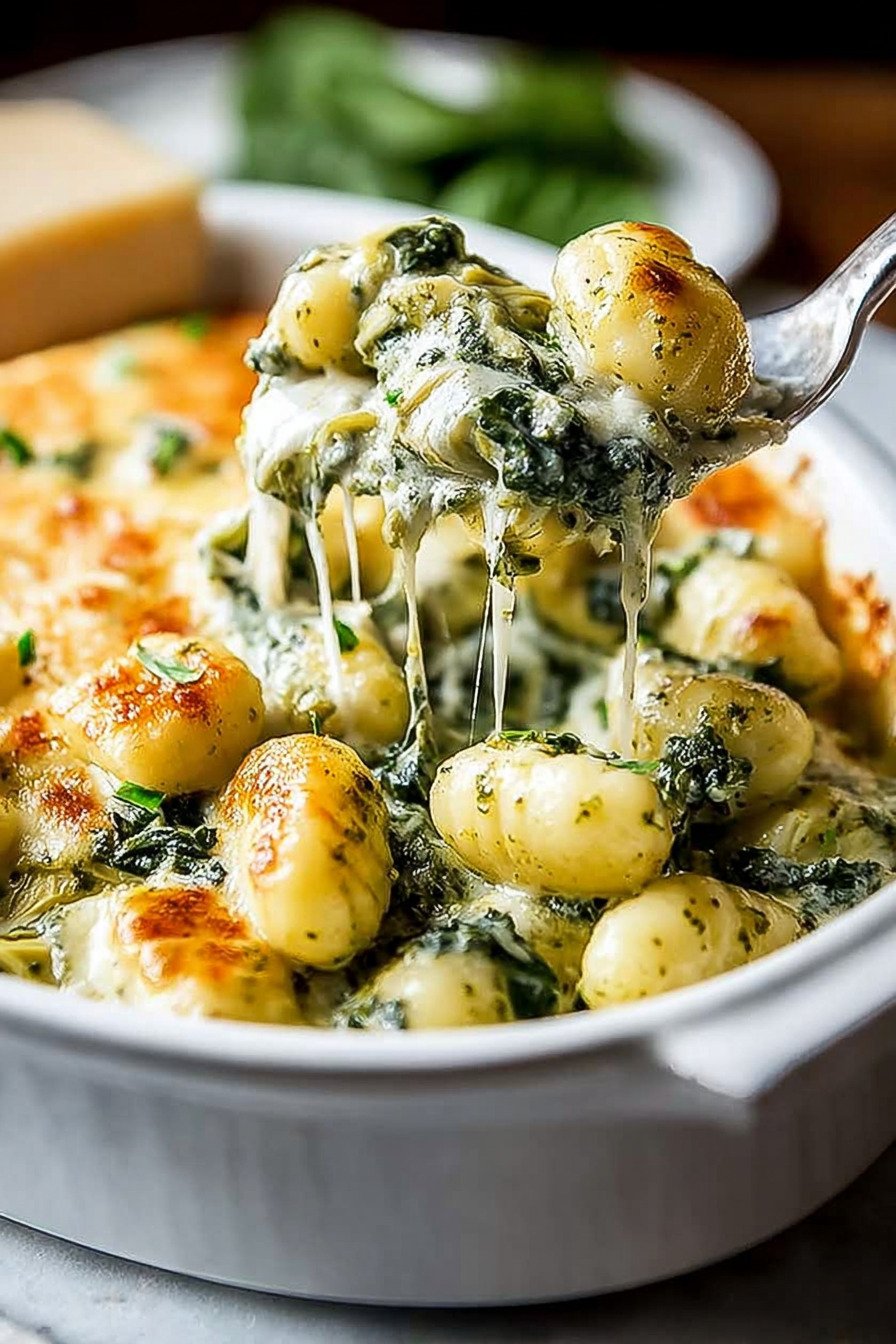 Dieses gnocchi rezept bringt cremige Aromen direkt auf den Tisch. Als Gnocchi Rezept vereint es eine feine Gnocchi Soße mit frischem Spinat. Viele kennen Gerichte Mit Gnocchi, doch diese Variante erinnert auch an Gnocchi Rezept Pfanne und passt perfekt zu Gnocchi Mit Spinat oder sogar Gnocchi Brokkoli. Zarte Gnocchi garen in einer milden Sahnesoße. Spinat fällt sanft zusammen. Artischocken sorgen für Tiefe. Der Käse schmilzt und verbindet alles zu einer runden Ofenmahlzeit. Das Gericht gelingt ohne Aufwand. Die Zutaten sind klar. Der Geschmack wirkt voll und doch leicht. So entsteht ein Essen, das satt macht und dennoch frisch bleibt.