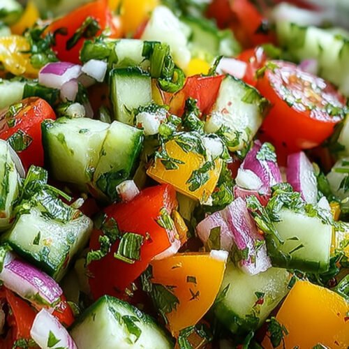 Dieser Salat lässt sich problemlos vorbereiten. Am besten werden die Gurken und Tomaten frisch geschnitten, das Dressing jedoch separat aufbewahrt. So bleibt das Gemüse knackig und verwässert nicht.