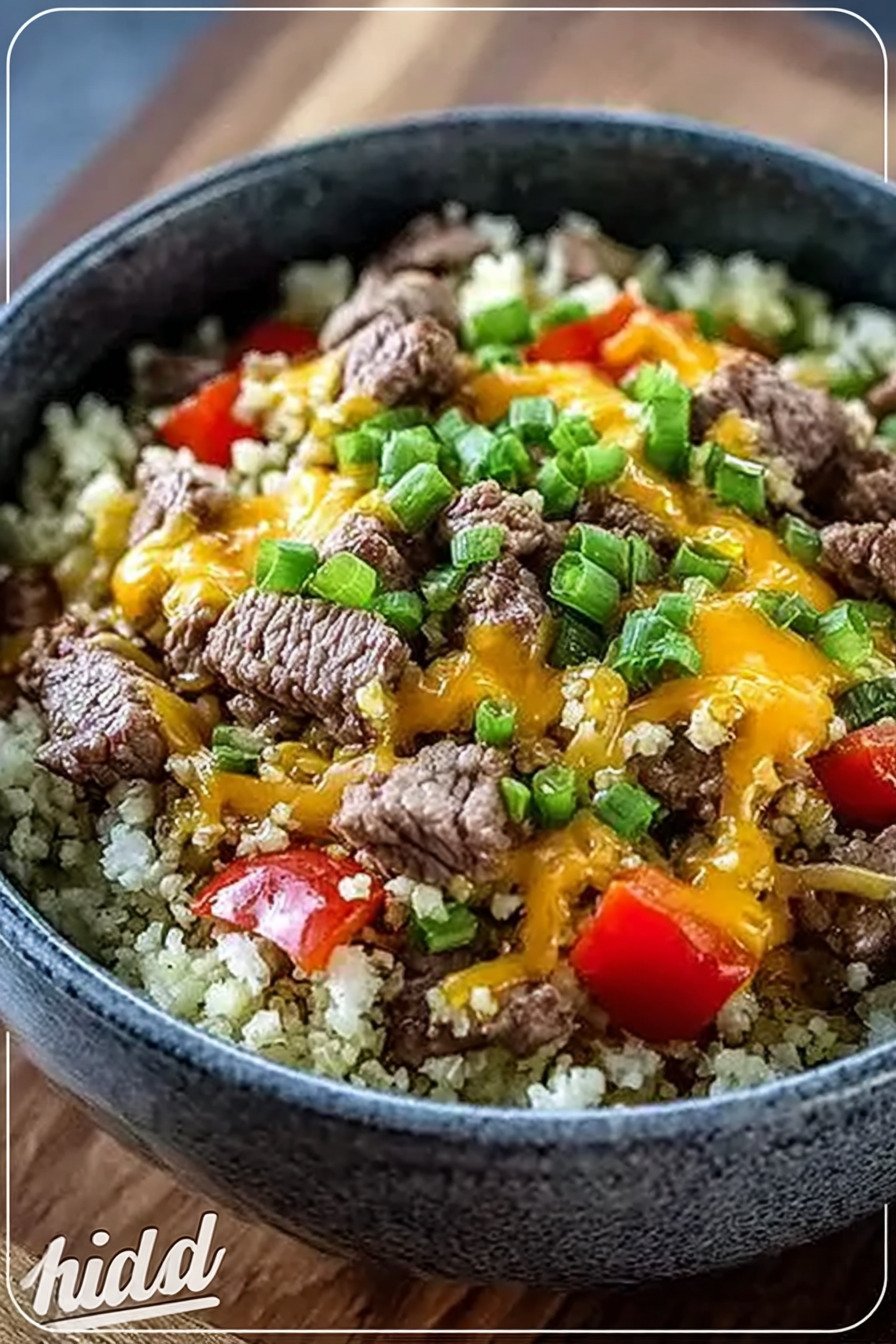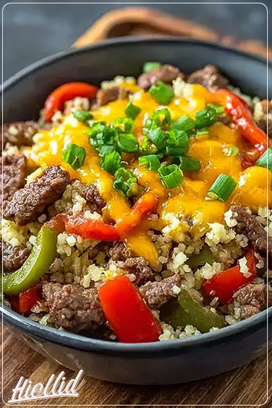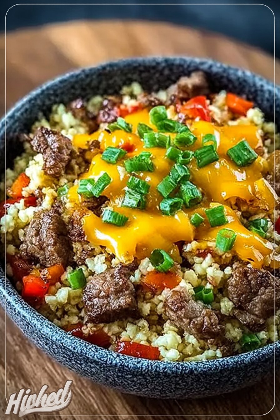 Die Basis bildet zart gegarter Blumenkohlreis. Das Hackfleisch brät kräftig an und entwickelt Röstaromen. Paprika und Zucchini bringen Farbe und eine frische Note. Gewürze halten sich schlicht und ergänzen den Eigengeschmack.