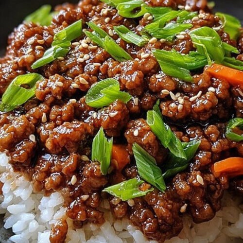- Teriyaki Hackfleisch darauf geben.