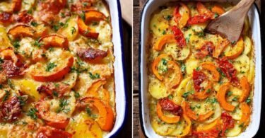 Die Kartoffeln bräunen gleichmäßig. Die Sauce haftet gut. Der Duft füllt die Küche. Das Gericht eignet sich als Beilage oder kleines Hauptgericht. Die Kombination trifft viele Vorlieben. Wer will, streut Kräuter. So entsteht ein frischer Akzent.