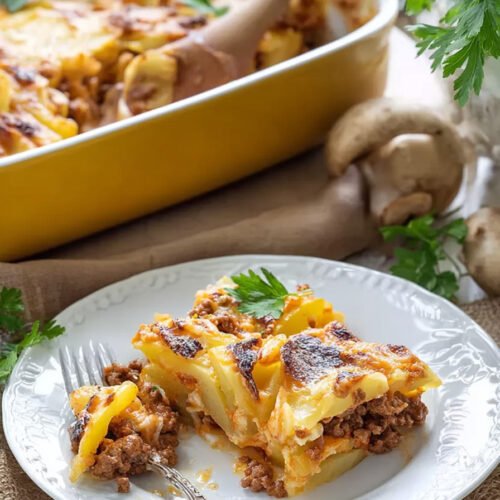 Dieses Gericht bringt zarte Kartoffeln und saftiges Hackfleisch in Schichten zusammen. Der Aufwand bleibt klein, der Geschmack bleibt groß. Die Struktur im Ofen hält jede Portion stabil.