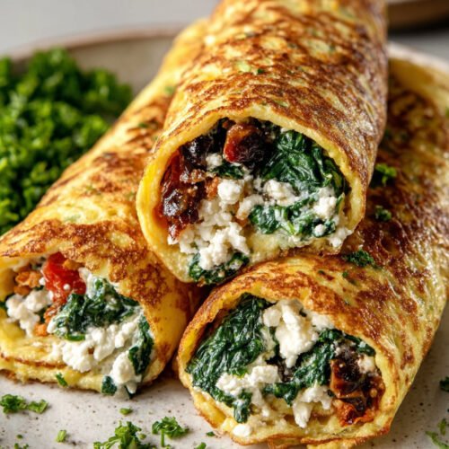 Gesunde Rezepte führen hier durch ein einfaches Gericht. Ein Ei Käse Teig wird zu dünnen Pfannkuchen gebacken. Spinat fällt in der Pfanne kurz zusammen. Feta bringt Salz und milde Säure. Alles rollt sich zu handlichen Wraps zusammen. Der Geschmack wirkt klar und mild. Die Konsistenz bleibt weich und saftig. Gesunde Wraps Rezepte geben alltagstaugliche Ideen. Wer rezepte mit wraps sucht, findet hier eine schnelle Lösung. Auch ohne Mehl bleibt der Biss stabil. Die Pfanne erhitzt gleichmäßig. Die Füllung bleibt warm. Jede Rolle liegt leicht in der Hand. Der Duft von Spinat und Käse füllt die Küche. Keto Kuchen Rezepte gehören meist in die Süßspeise. Dieses herzhafte Gericht passt trotzdem in eine keto freundliche Planung. Wer rezepte gesunde sammelt, ergänzt hier eine praktische Option. Ein rezept gesund zeigt klare Schritte und kurze Zeiten. Rezepte Mit Feta liefern Salz und Aroma. Das Ergebnis passt zum Frühstück, zum Mittag oder zum Abend.