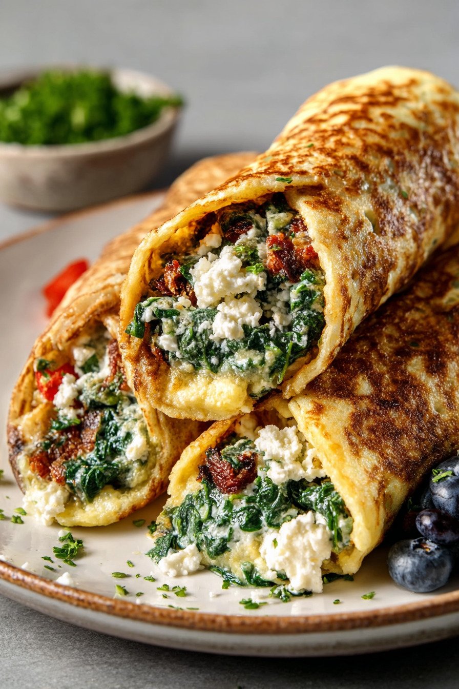 9) Keto Pfannkuchen Wraps mit Spinat und Feta