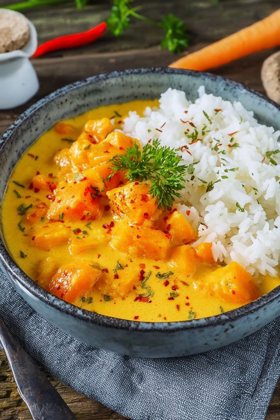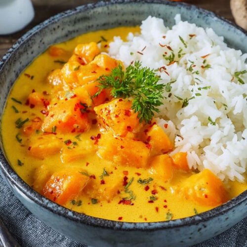 Kürbis Curry mit Kokosmilch Reis Rezepte Vegetarisch