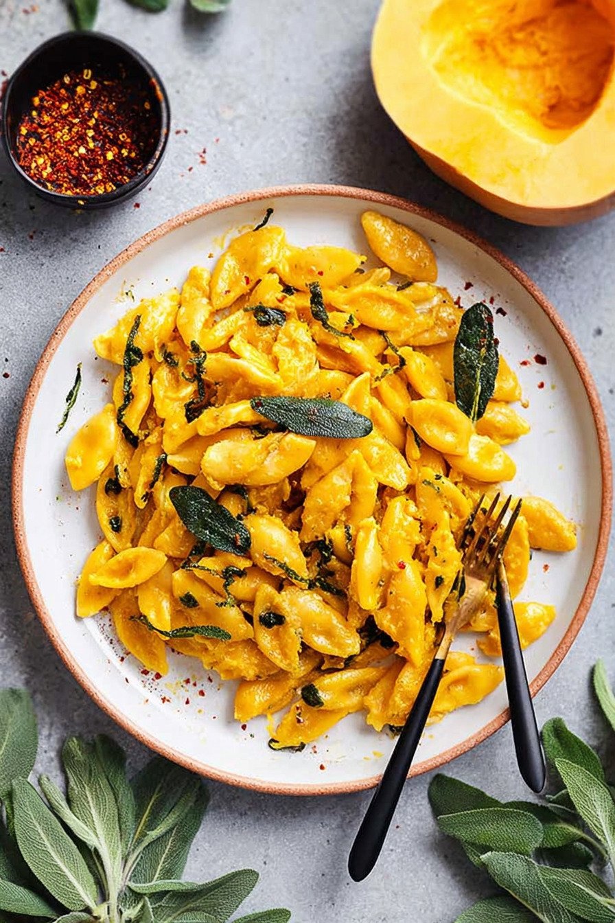 Kürbis Scherennudeln mit Salbei Knoblauch und Chili Vegetarische Rezepte Einfach