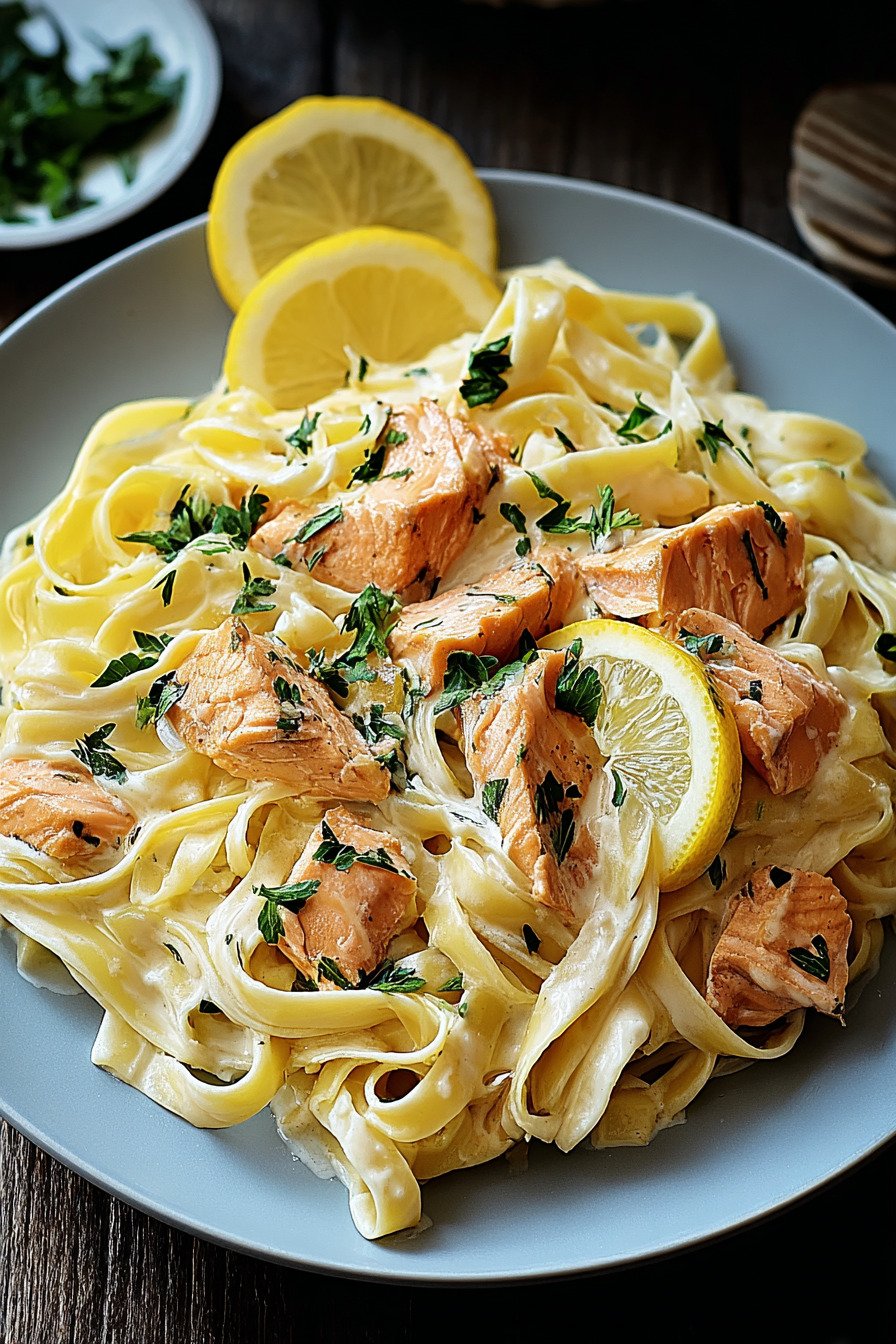 Lachs Rezept mit cremiger Zitronen Tagliatelle