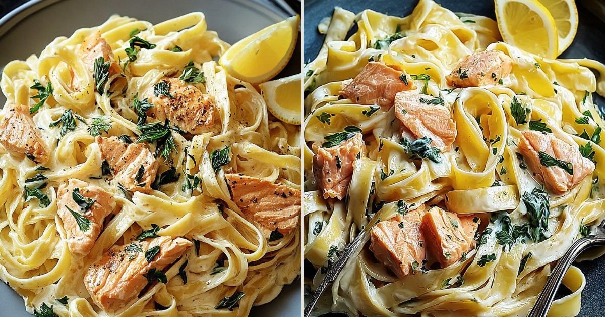 Lachs Rezept mit cremiger Zitronen Tagliatelle