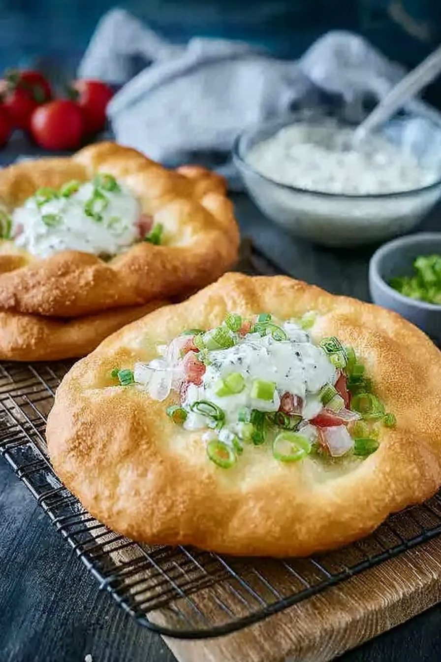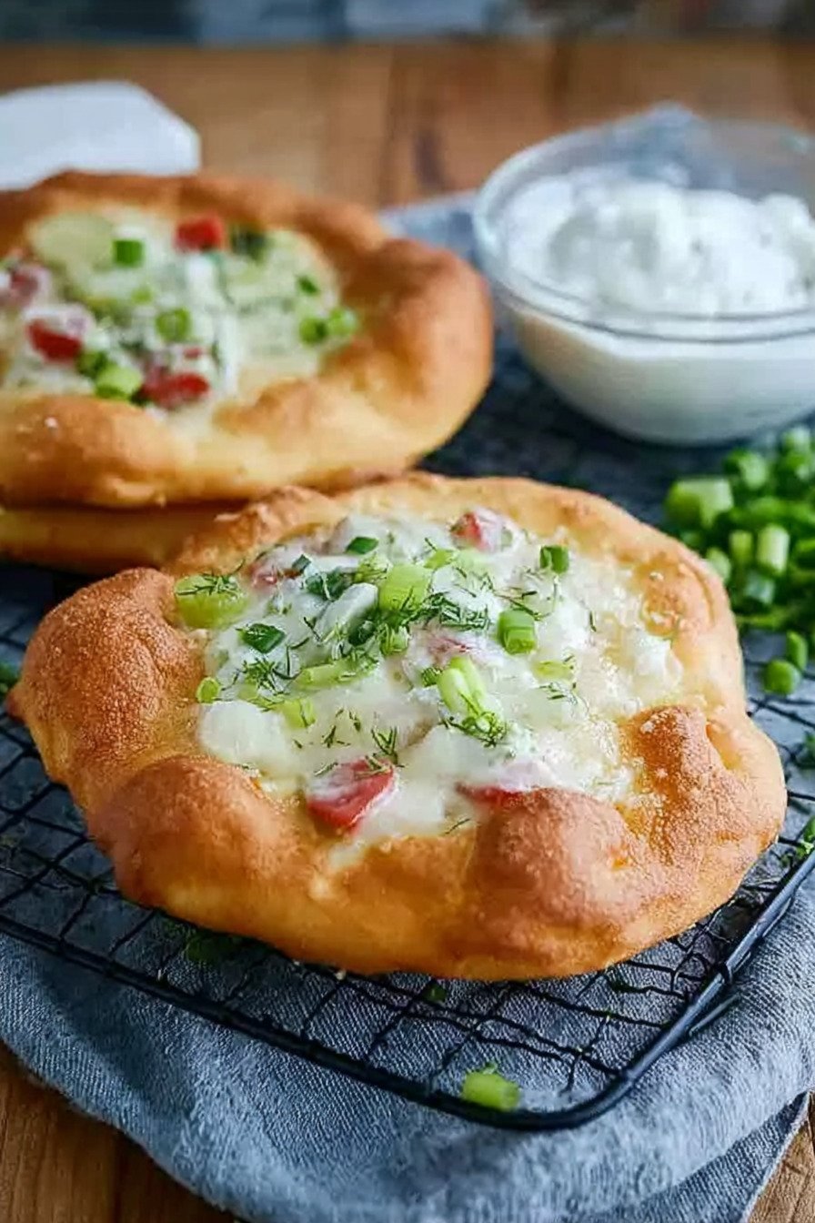 Ob als Snack, als Beilage oder als kleine Mahlzeit am Abend, dieses Gericht überzeugt durch Struktur, Duft und Geschmack. Langos bleibt innen weich und außen leicht knusprig.