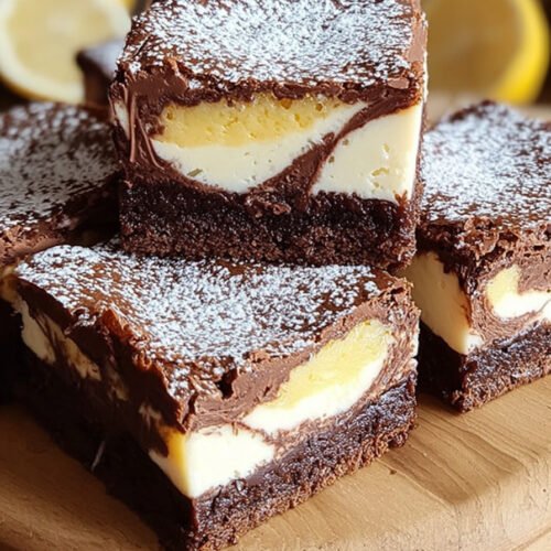 Die Cheesecake-Schicht lässt sich mit Zitronenabrieb verfeinern. So entsteht ein frischer Kontrast zum süßen Brownie-Boden. Wer experimentieren möchte, kann auch Beeren in die Masse geben.