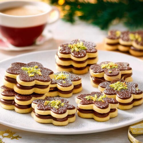 Schnelle Weihnachtskekse Backen passt, wenn wenig Zeit bleibt und trotzdem echter Genuss entstehen soll. Mozart Kekse verbinden Mürbeteig mit Pistazien Marzipan und Nougat. Der Duft steigt aus dem Ofen, die Ränder knuspern, die Mitte bleibt sanft. Weihnachtskekse Backen gelingt hier mit klaren Schritten. Schnelle Kekse Weihnachten fordert kein Profi Werk, nur ruhige Hände und ein sauberer Tisch. Schnelle Kekse Backen beginnt mit einem glatten Teig, dann folgt das Ausstechen, danach füllst du Nougat und Marzipan. Weihnachtskekse Rezepte wirken oft ähnlich, doch diese Kombination trägt viel Aroma und braucht nur wenige Werkzeuge. Viele suchen nach Weihnachtskekse Ohne Ei als Variante. Dieses Rezept nutzt Ei im Teig, doch du kannst eine ei freie Version testen und die Struktur mit etwas Milch ersetzen. Kekse Rezepte Weihnachten leben von Wiederholung, doch hier sorgt Pistazie für Farbe. Du backst eine kleine Serie, legst die Hälften zusammen und erhältst eine feine Praline im Keksformat.