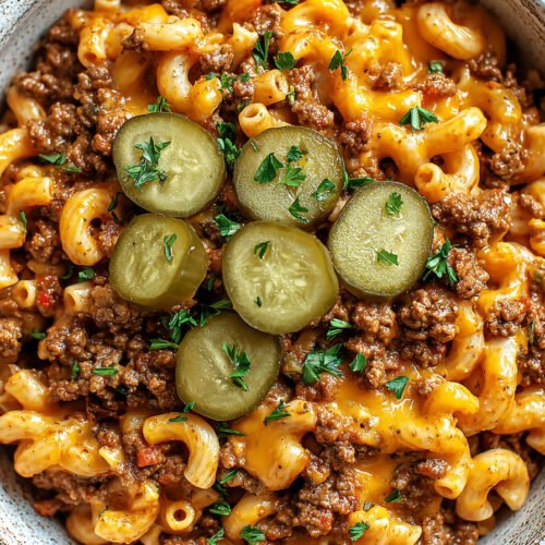 Wenn du auf der Suche nach einfachen und leckeren Onepot Rezepte bist, dann ist diese One Pot Cheeseburger Pasta genau das Richtige für dich. Dieses Gericht vereint alles, was wir an klassischen Cheeseburgern lieben, mit dem Komfort von One Pot Rezepte Nudeln – cremig, würzig und unglaublich sättigend. Perfekt für stressige Tage, an denen Schnelle One Pot Rezepte gefragt sind. Besonders praktisch: Du brauchst nur einen Topf, wodurch dieses Rezept ideal für Fans von One Pot Rezepte ist, die wenig Abwasch und maximalen Geschmack möchten. Auch wenn du gerne experimentierst, kannst du dieses Gericht leicht anpassen und sogar in Richtung One Pot Pasta Vegetarisch abwandeln. Im Vergleich zu One Pot Reis Rezepte oder One Pot Rezepte Ofen ist diese Variante besonders schnell auf dem Tisch. Ob für die Familie oder ein schnelles Abendessen – dieses Gericht gehört definitiv zu den besten Onepot Rezepte für jeden Tag. Die Kombination aus Pasta, Hackfleisch und Käse sorgt für echten Komfort-Food-Genuss, während die einfache Zubereitung es zu einem Favoriten unter den Schnelle One Pot Rezepte macht.