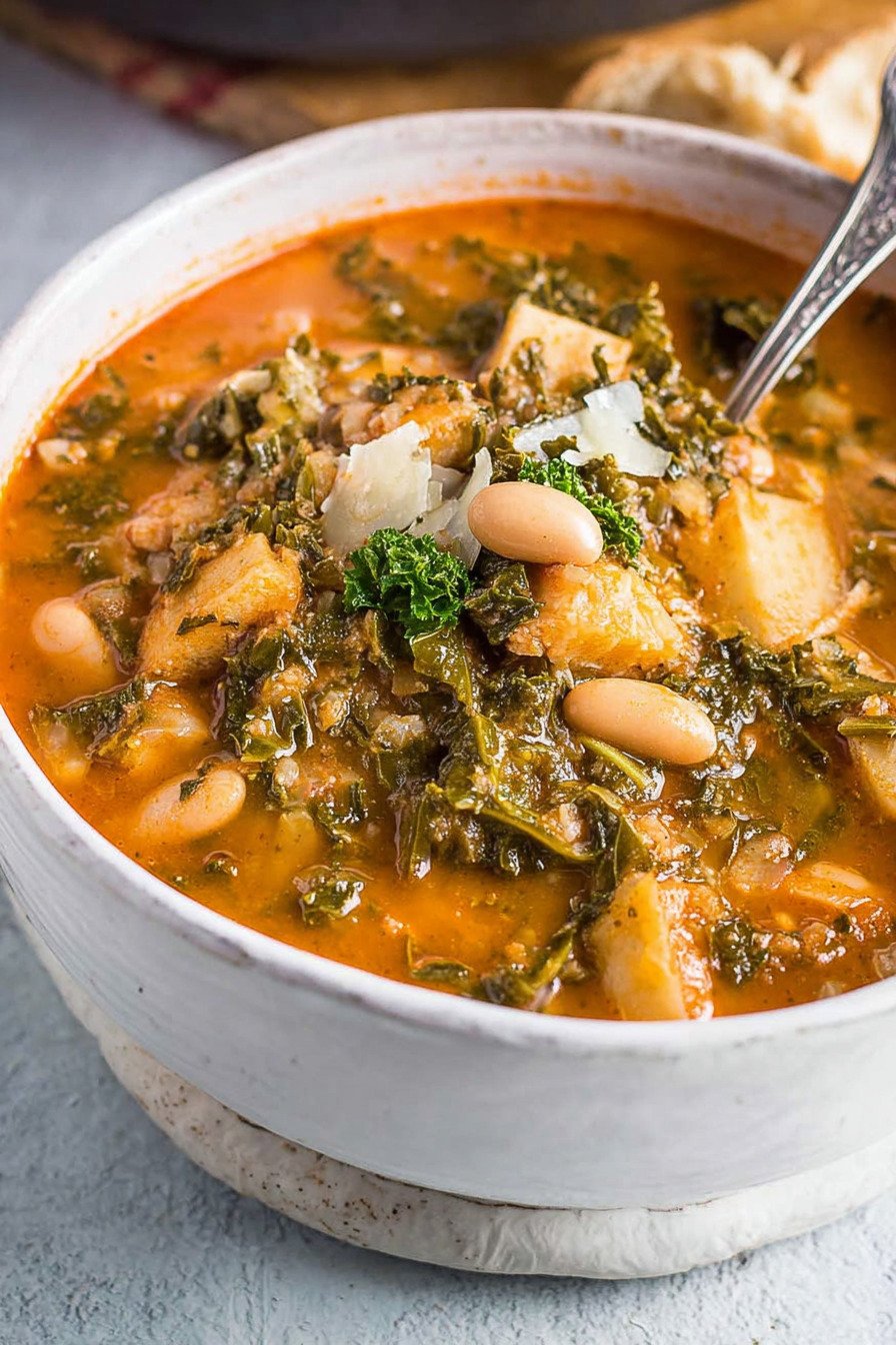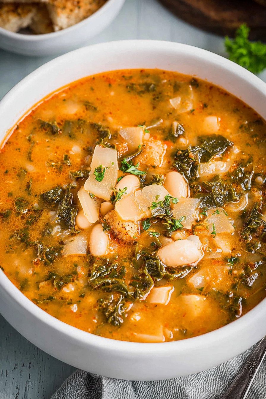 Diese Ribollita passt in einen vollen Alltag und bleibt am zweiten Tag sogar noch besser. Sie steht als warme Mahlzeit bereit, lässt sich gut vorbereiten und eignet sich für Mealprep Rezepte Vegetarisch. Das Gemüse gart sanft in Tomaten und Brühe, die Bohnen geben cremige Bindung. Brot dazu liefert Biss. Mit wenigen Schritten entsteht ein Topf, der nach Italien duftet. Der Ansatz beginnt mit Zwiebel, Sellerie und Karotte. Knoblauch bringt Tiefe. Tomaten runden ab. Der Grünkohl kommt zum Schluss und bleibt frisch. Das Ergebnis passt in Schnelle Vegetarische Rezepte und wirkt als Teil von Italienische Rezepte. Wer nach Suchbegriffen sucht, findet hier auch rezepte italienische sowie Schnelle Rezepte Vegetarisch. Für noch mehr Ideen notiere ich rezepte vegetarisch schnelle und rezepte italienisch. Ich serviere die Suppe mit geröstetem Brot und etwas Parmesan, vegan oder klassisch. Die Schüssel wärmt, der Geschmack bleibt klar, die Zubereitung bleibt einfach.
