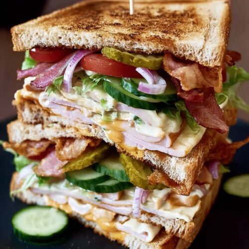 Für Vegetarier eignet sich eine Version ohne Fleisch. Gebratene Pilze oder gegrilltes Gemüse ersetzen Hähnchen und Bacon. Diese Anpassung zeigt, wie flexibel ein Club Sandwich sein kann.