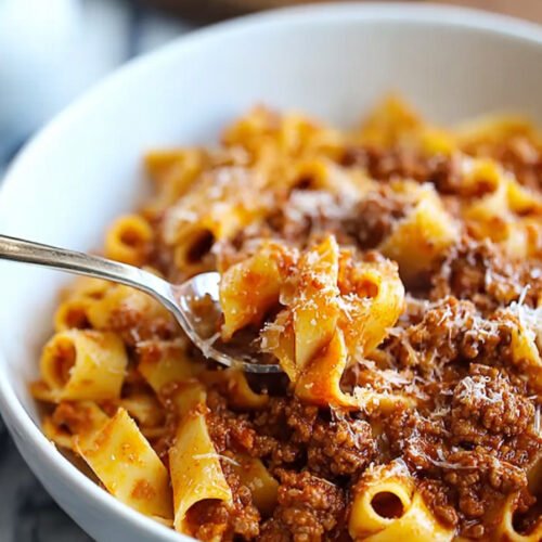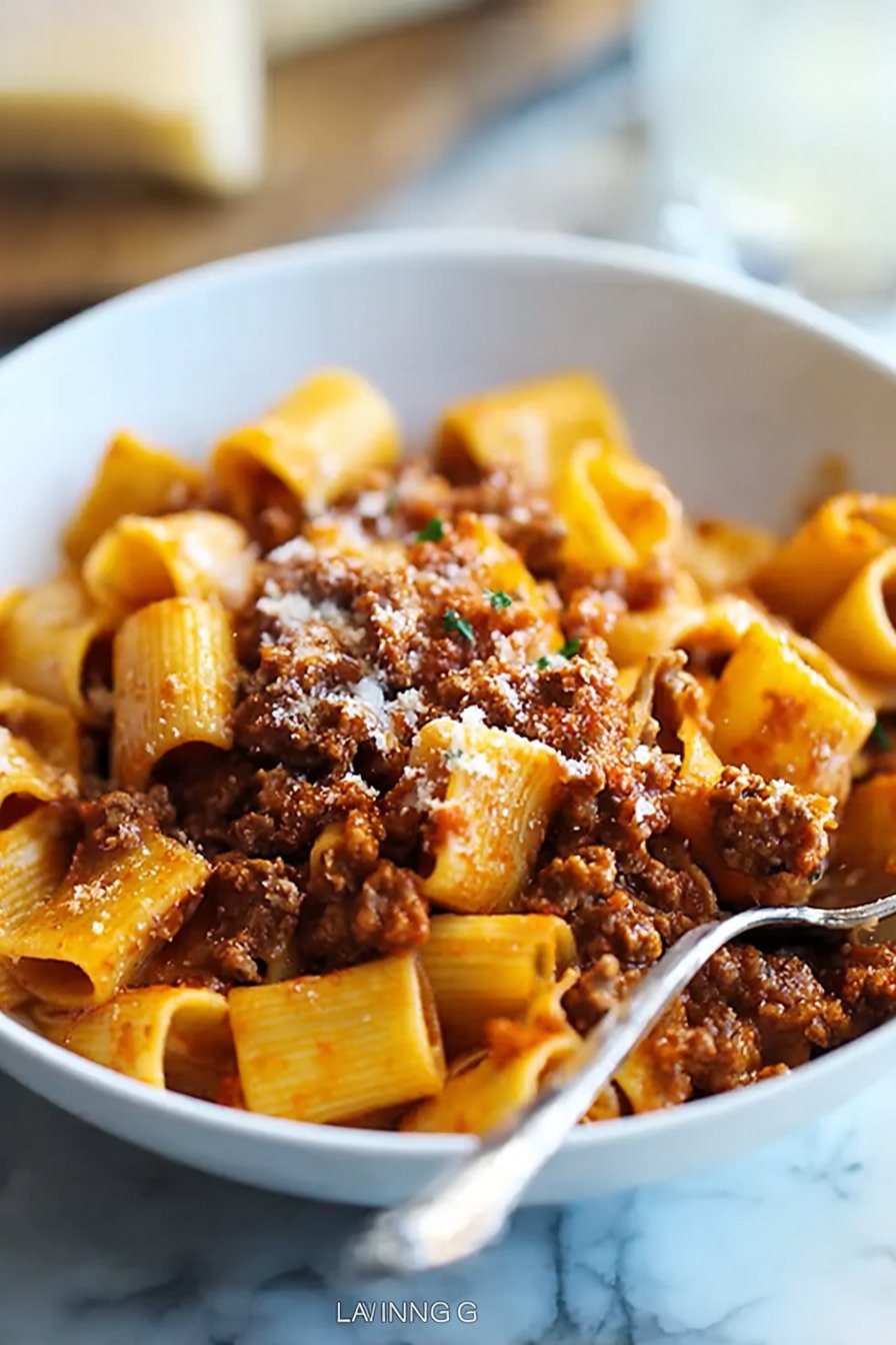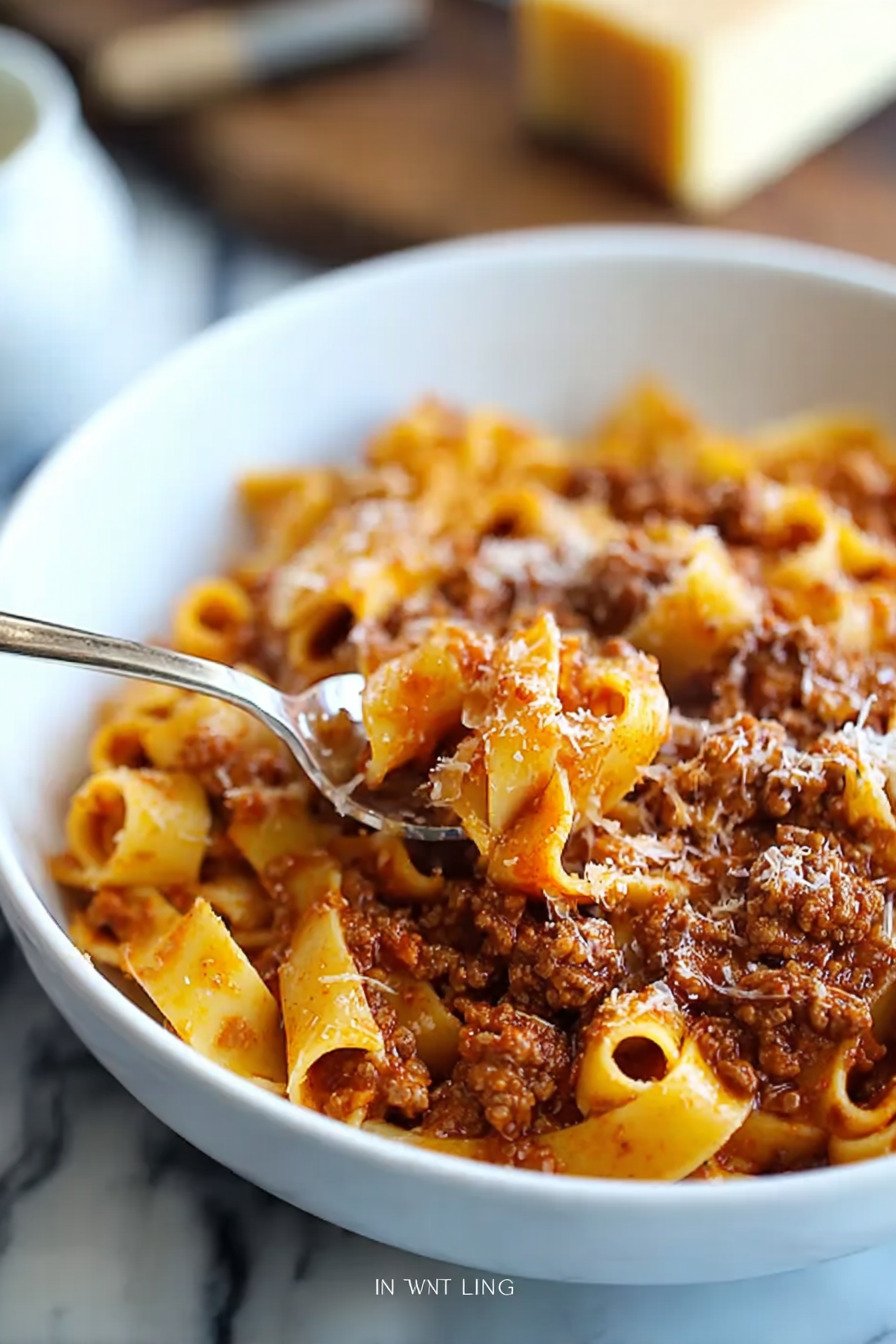 Dieses Rezept führt mit Ruhe zu Tiefe. Sorgfältig geschnittenes Soffritto trägt das Aroma. Langsames Schmoren bringt Körper. Milch gibt Glanz und macht das Ragù sanft. Spaghetti bleiben bissfest und tragen die Sauce ohne zu erdrücken. Parmesan fällt fein und bindet den Geschmack.