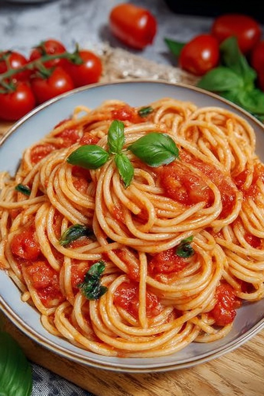 Dieses Gericht steht für Alltag und Qualität. Ich, Lina von Lina Rezepte, zeige dir einen direkten Weg. Du brauchst Spaghetti, Tomaten, Olivenöl, Knoblauch und Basilikum. Mehr nicht.