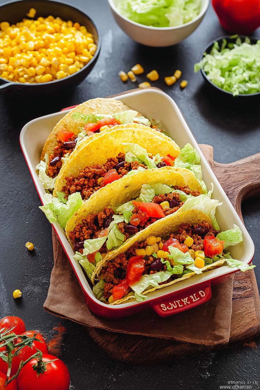 Die Füllung basiert auf Hack oder Bohnen. Die Gewürze verbinden sich schnell mit Tomatenmark. Dadurch entsteht Tiefe ohne lange Schmorzeit. Die Shells werden kurz erwärmt. Das verhindert Bruch und verbessert den Biss.