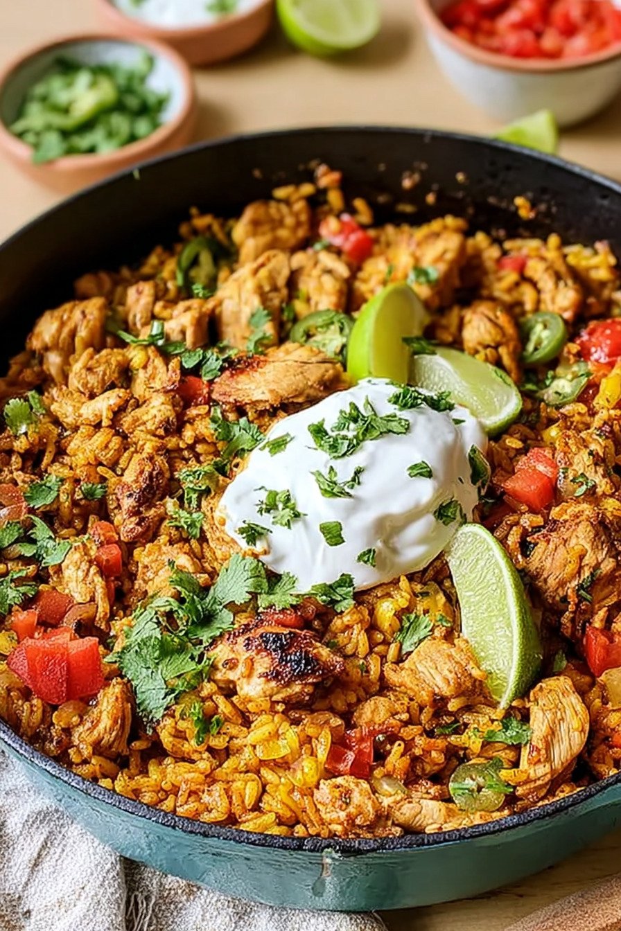 Die Kombination erinnert an ein Taco Salat Rezept, doch hier wärmt der Reis und trägt das Aroma. Im Vergleich zu einer Hackfleisch Reis Pfanne wirkt das Hähnchen leichter, aber nicht weniger kräftig. Genau das macht den Reiz aus.