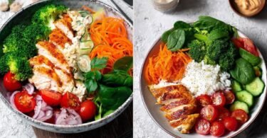 Kalorienarme Mittagessen Bowl mit Hähnchen und Gemüse