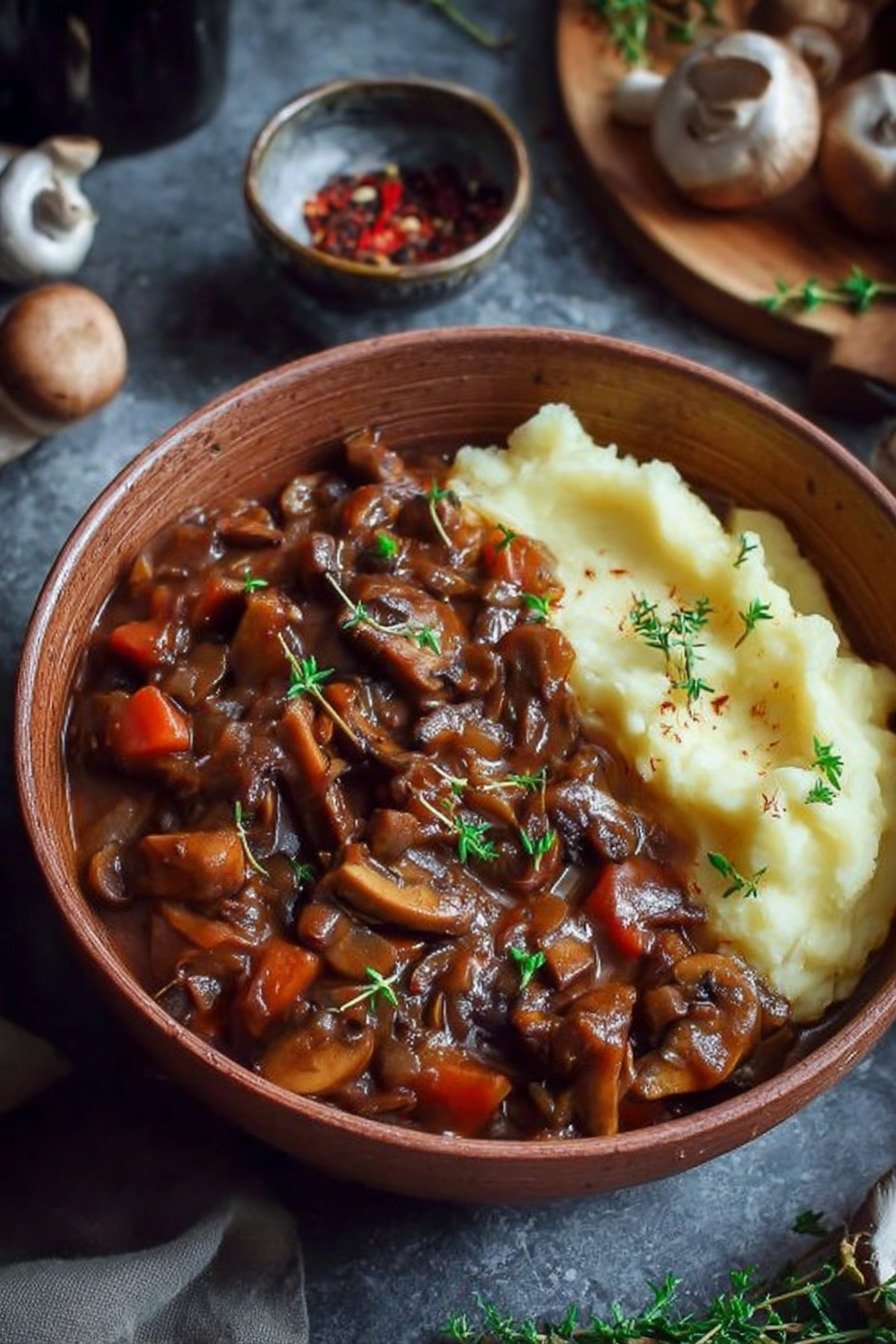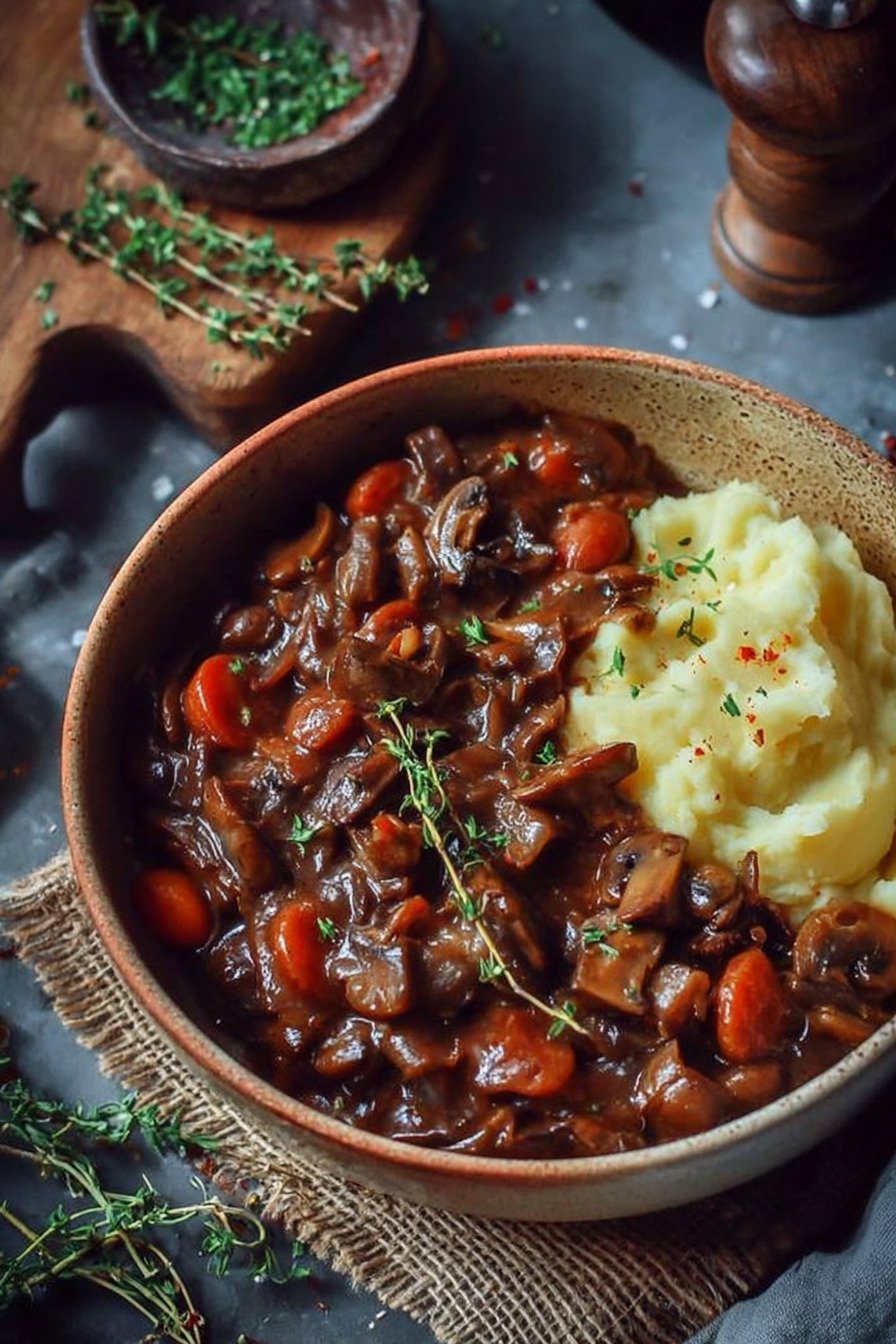 • 9) Herzhaftes Pilz-Gulasch Bourguignon: Ein Veganes Abendessen für Jeden Tag