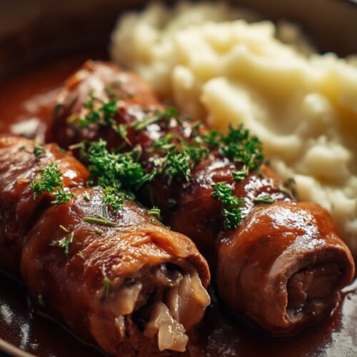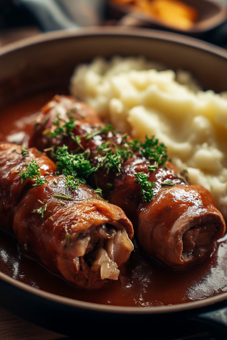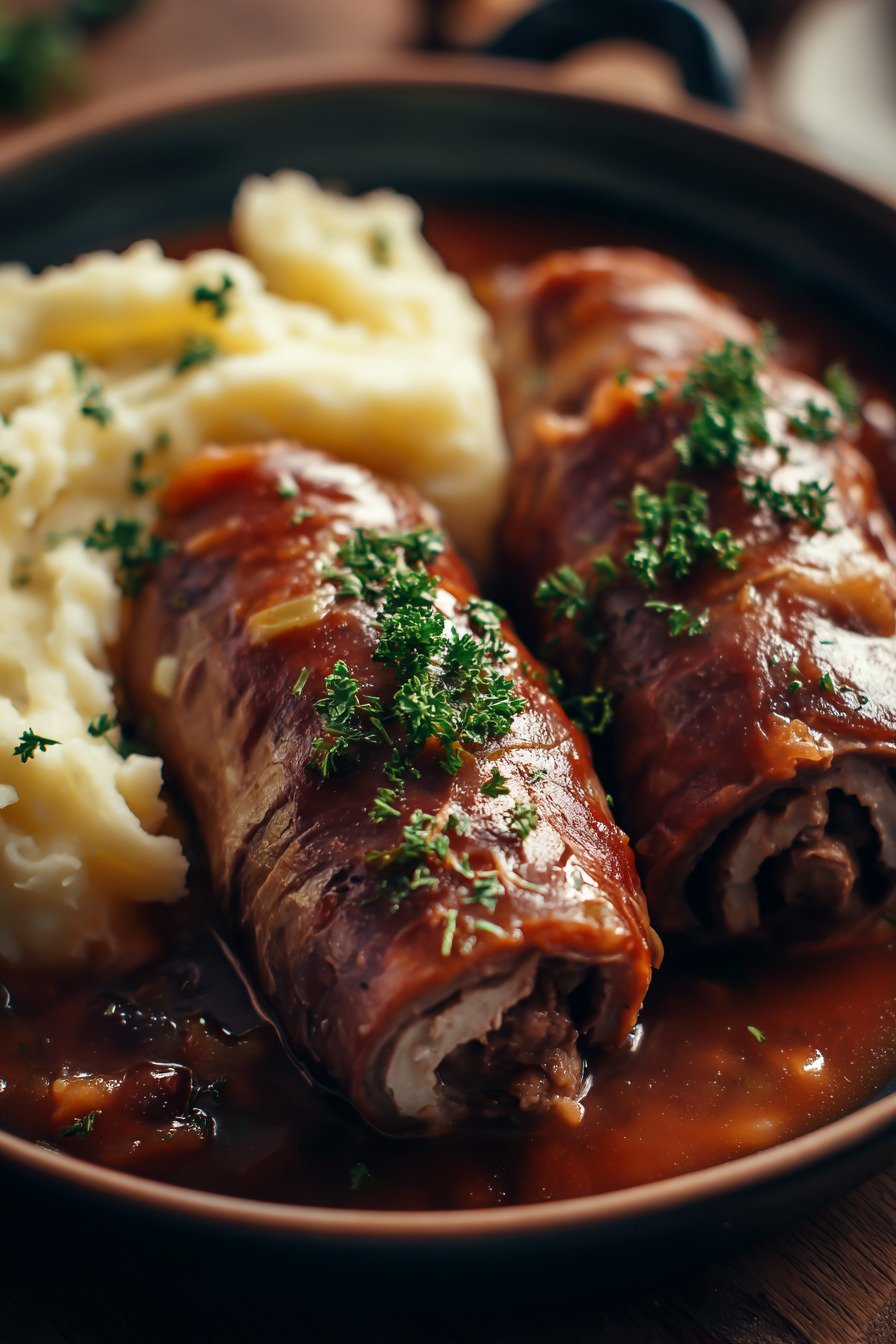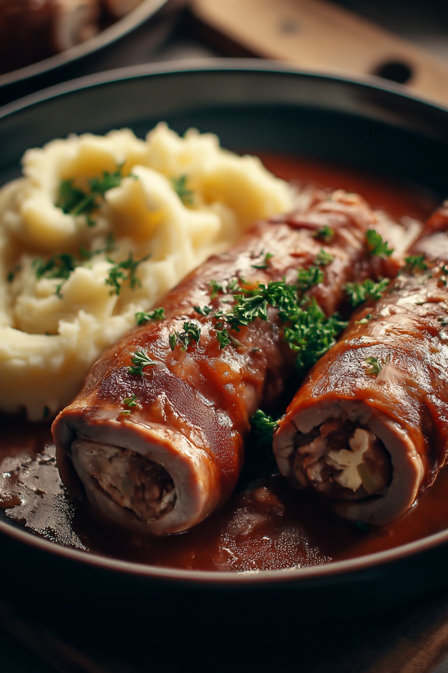 Dieses Gericht eignet sich hervorragend zum Vorbereiten, weil die Aromen nach etwas Ruhezeit sogar noch runder wirken. Du kannst die Rouladen bereits füllen, aufrollen und bis zum nächsten Tag abgedeckt im Kühlschrank lagern. Das spart Zeit und macht das Rezept besonders praktisch für stressfreie Einfache Rezepte im Alltag.